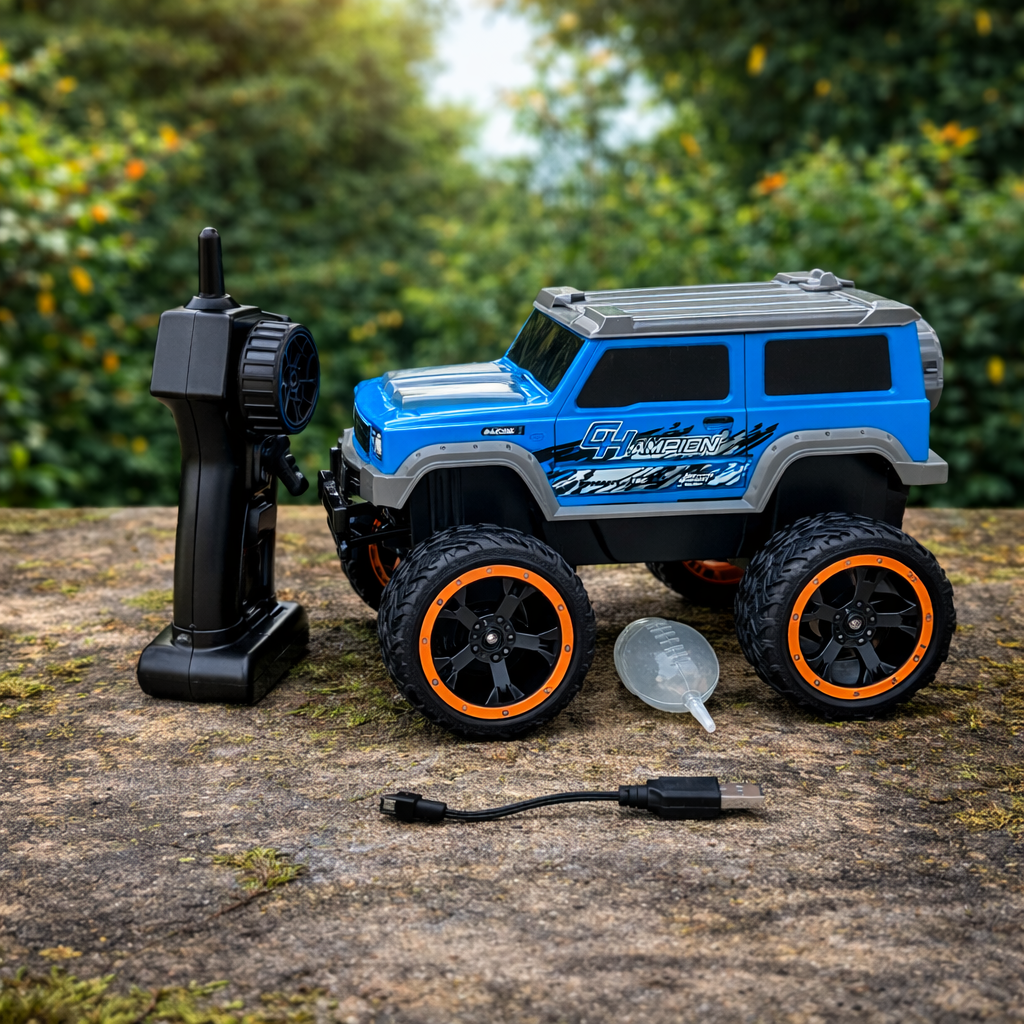 Experience thrilling rides with this 1:16 scale RC monster truck designed for rugged terrains. Equipped with large anti-slip tires and strong suspension, it easily handles grass, sand, and rough surfaces.