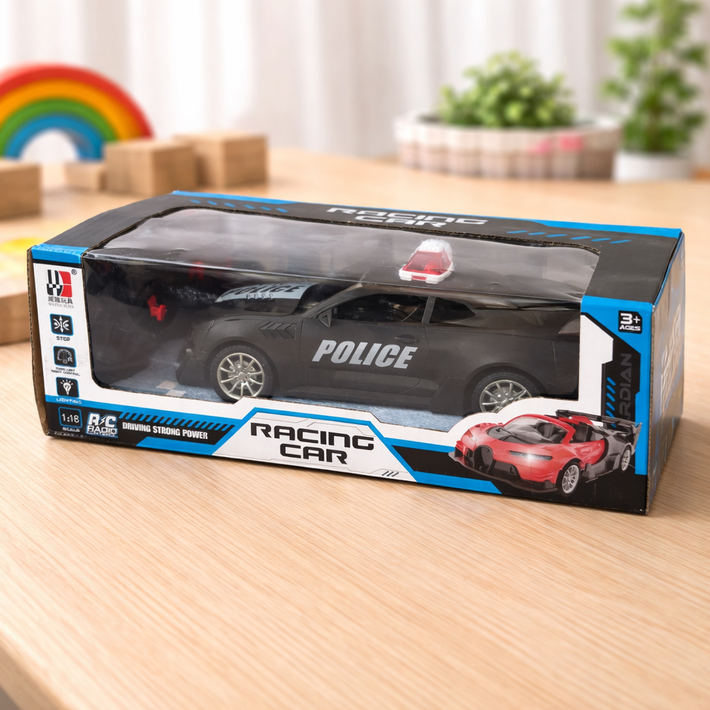 Experience thrilling high-speed action with this 1:18 Scale RC Police Racing Car! Designed for young racers, this stylish police car comes with a powerful remote control system, realistic design, and exciting features that bring endless fun.