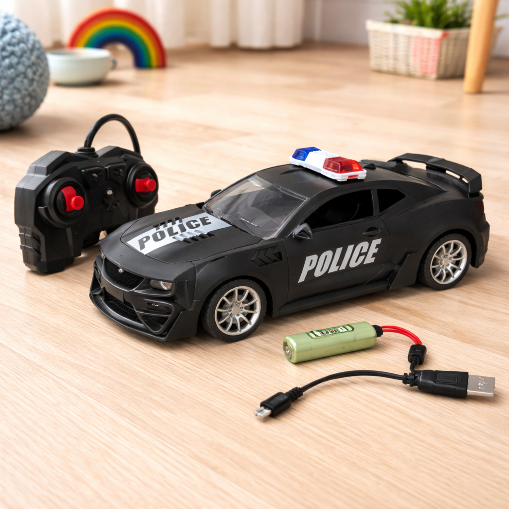 1:18 Scale RC Police Racing Car with Remote Control, Rechargeable Battery & LED Lights – High Speed Toy Car for Kids (3+ Years)