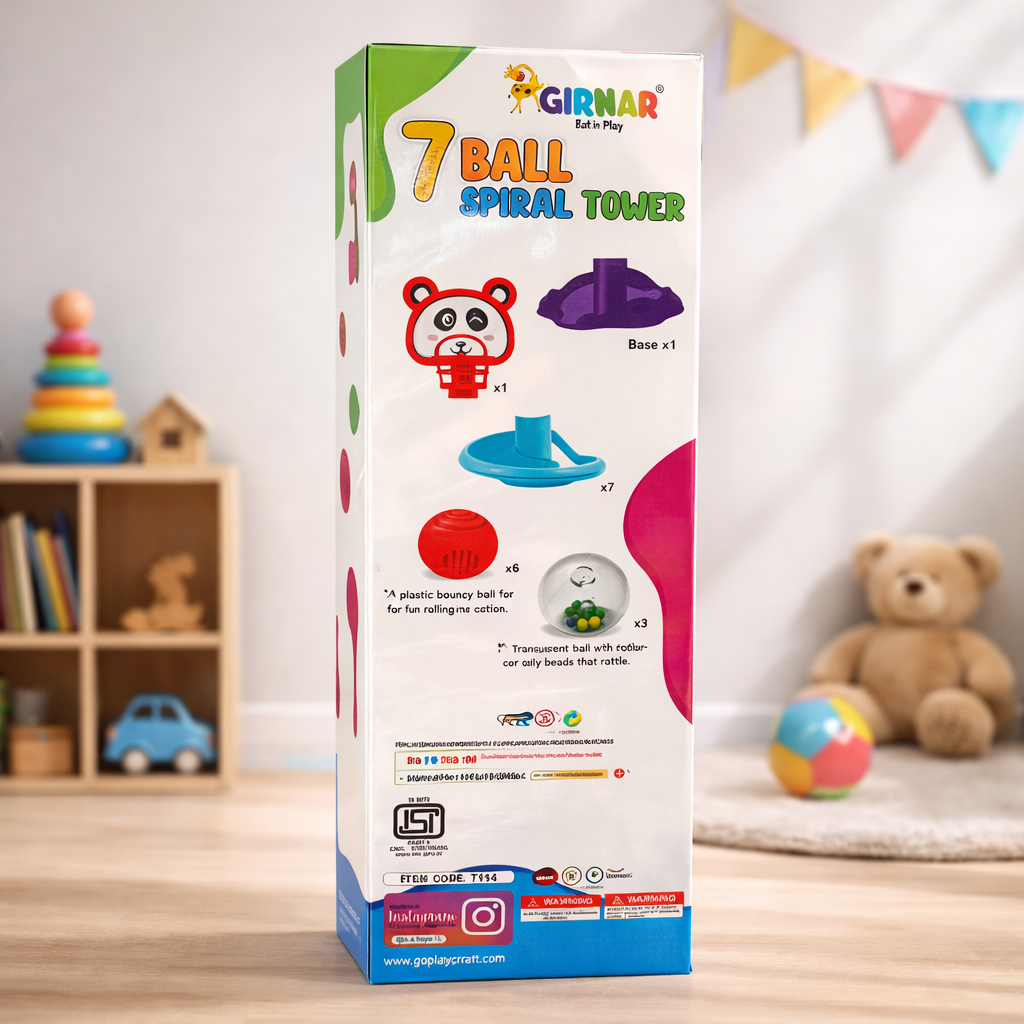 Make playtime fun and educational with the Girnar 7 Ball Spiral Tower – a colorful rolling ball toy designed to engage young minds. Perfect for toddlers, this interactive toy encourages sensory development, hand-eye coordination, and endless entertainment.