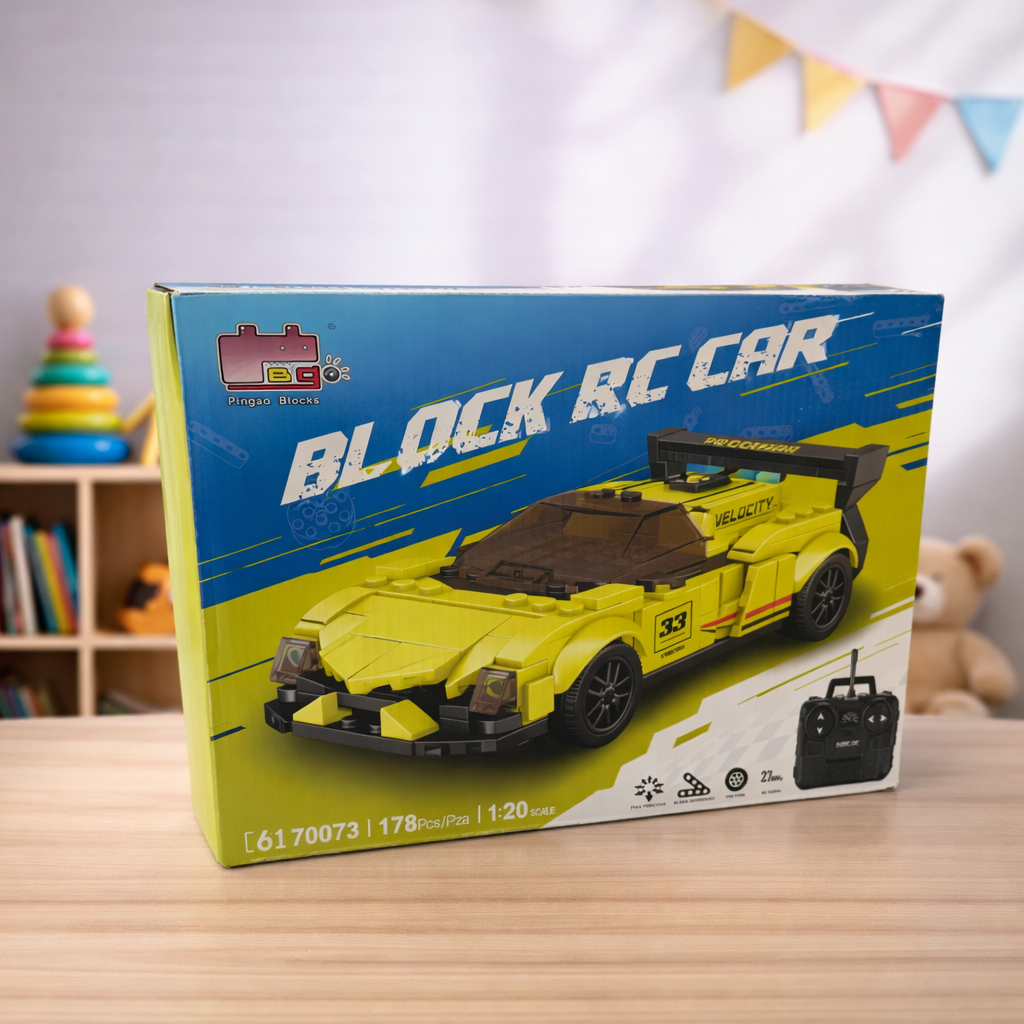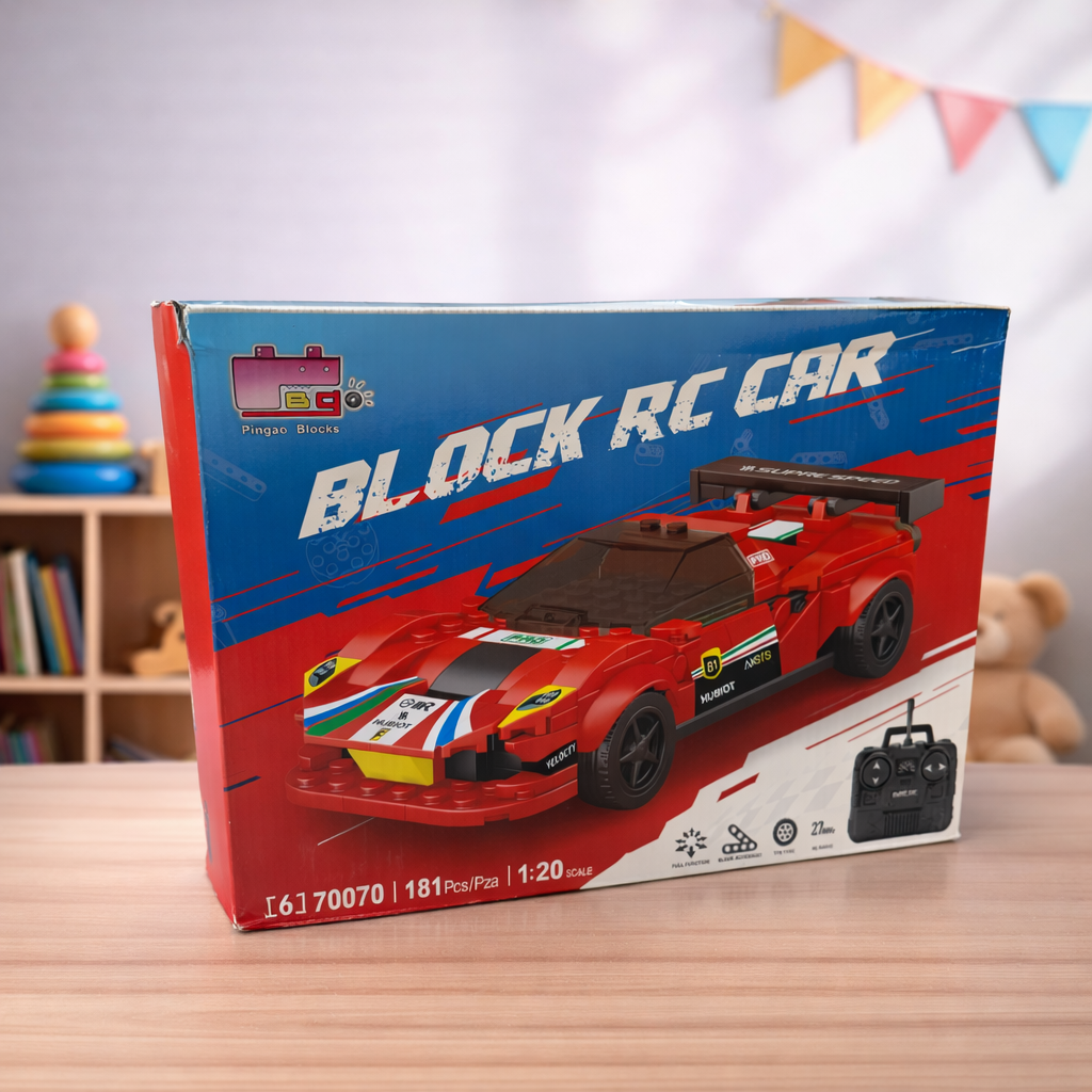 Combine creativity and racing fun with this block RC car building set! Kids can assemble their own sports car and control it remotely for an exciting hands-on experience.