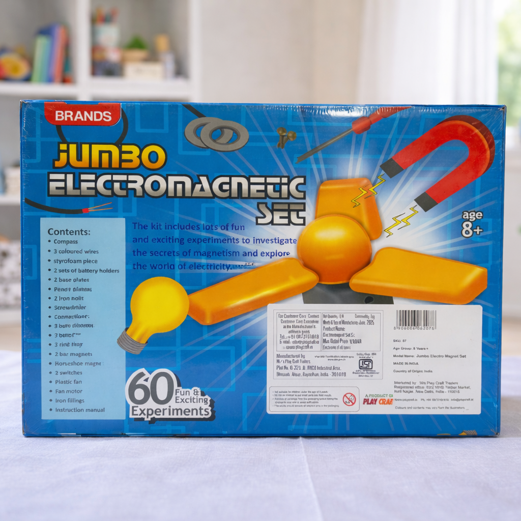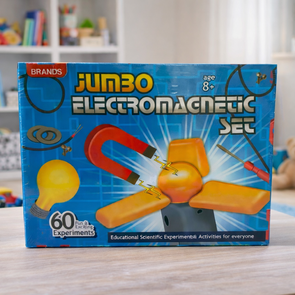 Turn learning into an exciting adventure with the Jumbo Electromagnetic Science Kit! Packed with 60 hands-on experiments, this kit helps kids explore the fascinating world of electricity and magnetism in a fun and interactive way.