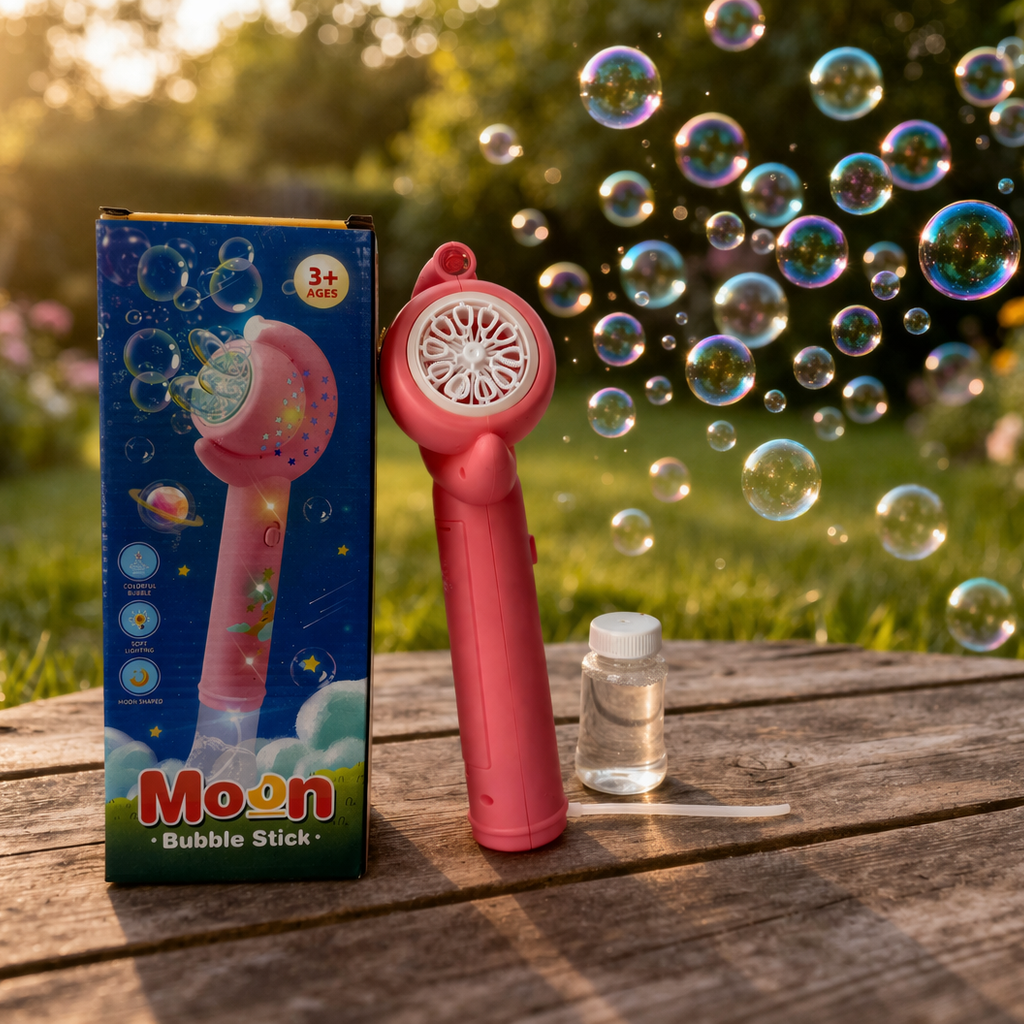 Moon Bubble Stick Toy with Light & Automatic Bubble Maker – Kids Bubble Gun Wand with Solution Bottle | Outdoor Fun Toy for Kids (3+ Years)