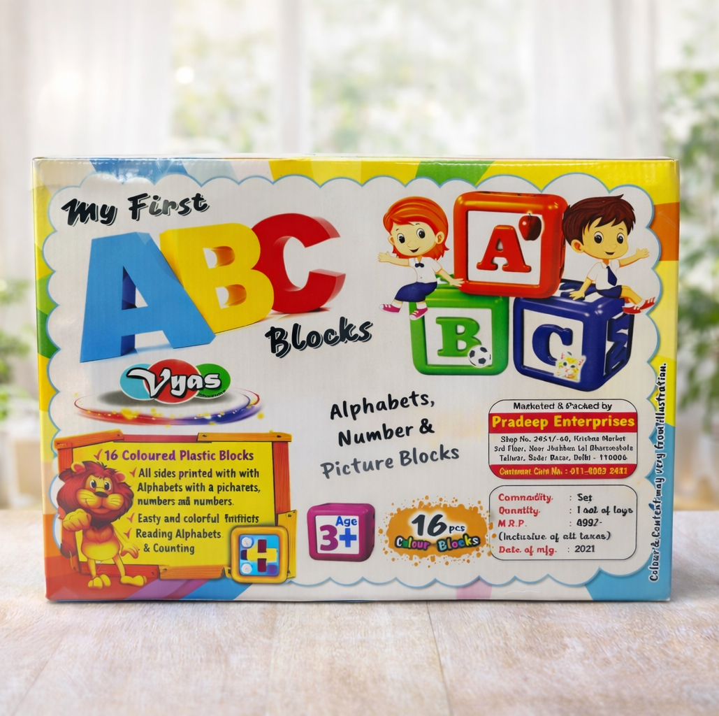 My First ABC Blocks for Kids – 16 Colorful Alphabet, Number & Picture Learning Blocks | Educational Toy for Toddlers 3+ Years | Early Learning & Cognitive Development Toy