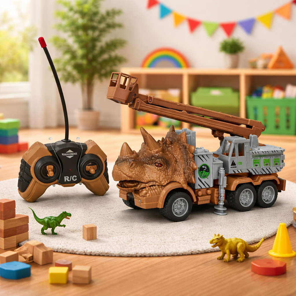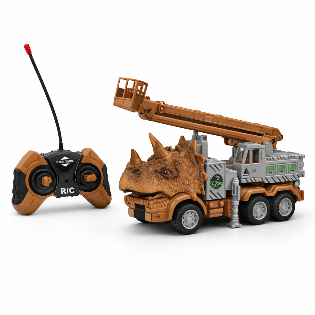 This Remote Control Dinosaur Truck Toy is designed with a unique dinosaur-themed body and a functional crane, this exciting RC vehicle offers endless fun for kids who love construction toys and dinosaurs.
