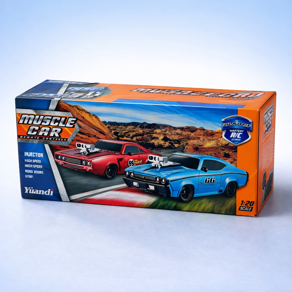 Experience thrilling racing action with this 1:20 scale Remote Control Muscle Car, designed for speed, durability, and fun. Featuring a stylish muscle car design and smooth controls, this RC car is perfect for kids and toy car enthusiasts.